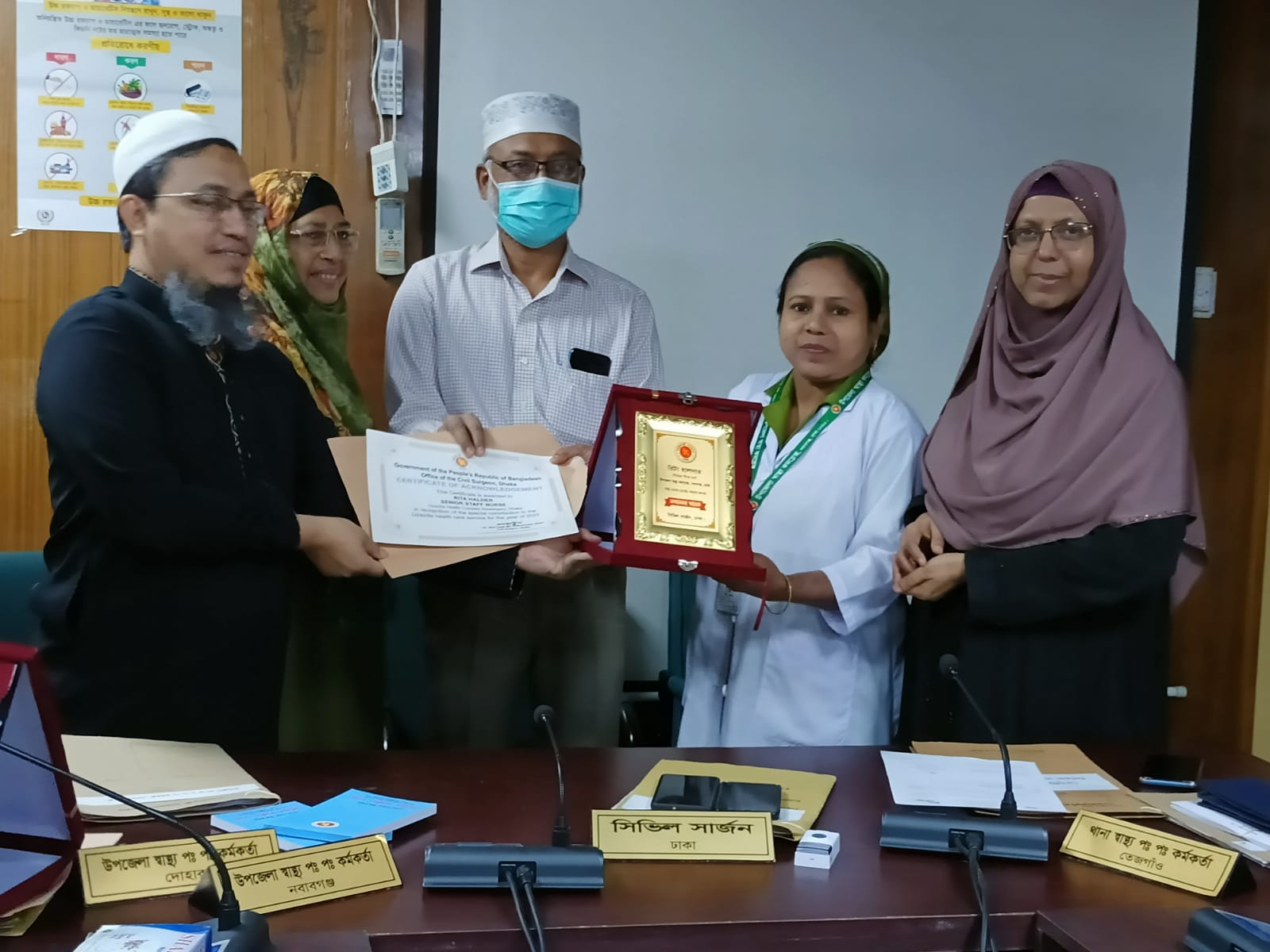 ঢাকা জেলার স্বাস্থ্য সেবায় অনন্য অবদান রাখার পুরষ্কারস্বরূপ ঢাকা সিভিল সার্জনের কার্যালয়ের পক্ষ থেকে জেলার বিভিন্ন উপজেলা স্বাস্থ্য কমপ্লেক্সের সিনিয়র স্টাফ নার্স ও নার্সিং সুপারভাইজারদের সম্মাননা প্রদান করা হয়েছে।
