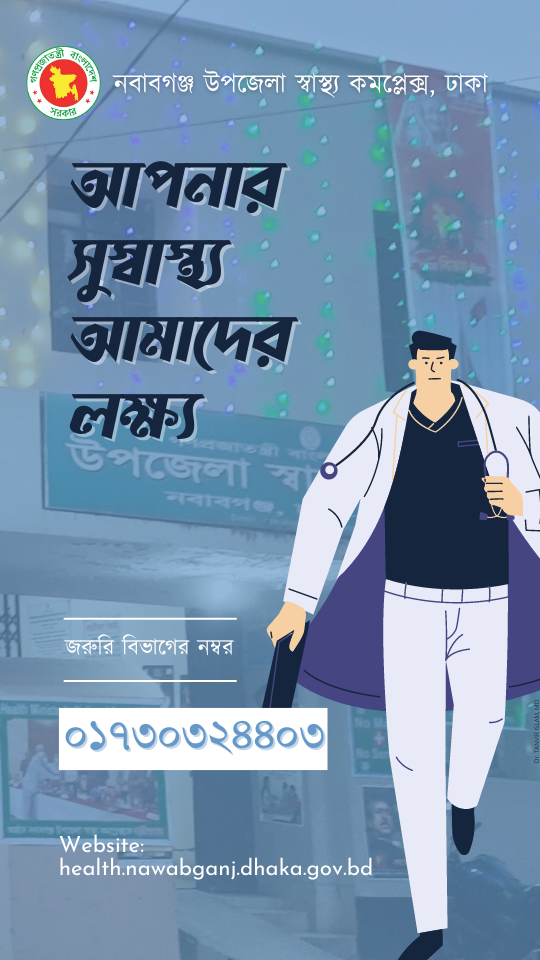 নবাবগঞ্জ উপজেলা স্বাস্থ্য কমপ্লেক্সের জরুরি বিভাগে কথা বলতে নিচের ছবিতে দেখানো নম্বরে কল দিন।